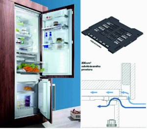Do skeletu korpusu nově instalujeme patentovaný systém větracího dna pro vestavné ledničky. Dno řeší známý problém s ochlazováním a cirkulací vzduchu kolem chladícího agregátu a motoru lednice.