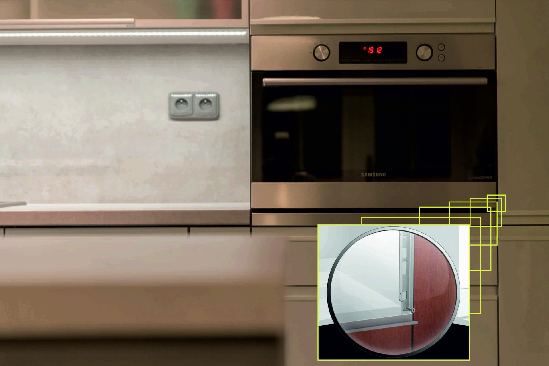 Není důležité, zda otvíráte dvířka vestavného spořebiče či pevná nábytková dvířka. SERVO-DRIVE flex využijete nezávisle na konstrukční situaci u běžných vestavných ledniček a myček nádobí.